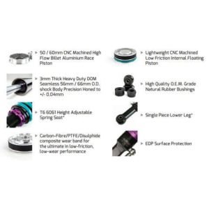 - Complete suspension kit for 4×4 Off Road Use, fine-tuned to match the vehicle