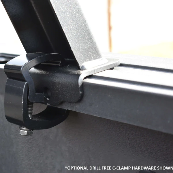 - Bolts to the inside of bed rails or can alternatively be mounted with optional “drill-free” clamps to mount like a truck topper (Not applicable when bolting to accessory rail systems)