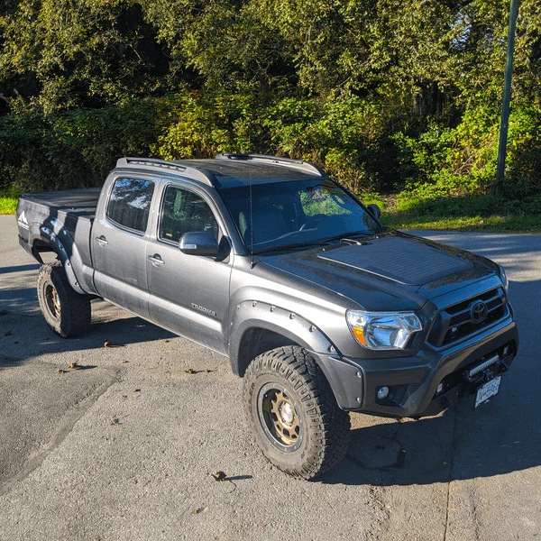 - 90 watts of energy on the hood of your 2nd Gen Toyota Tacoma from a solar panel that’s only 3mm thick, meaning vehicle aerodynamics are not affected and the weight of the system is negligible.