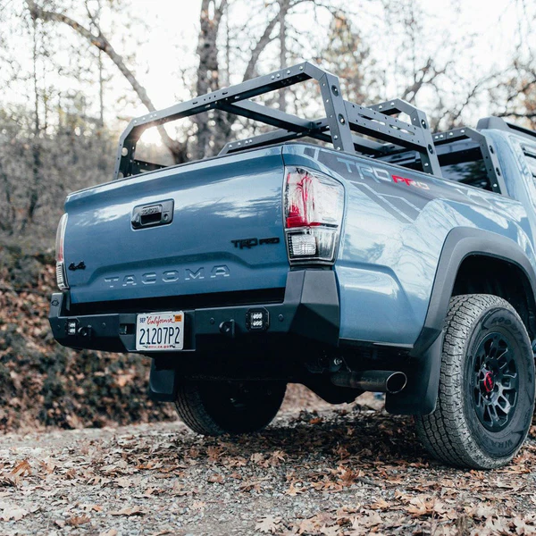 Get the clearance and strength you need while adding style! All-Pro Off-Road’s 16+ Tacoma APEXG3N Steel Rear Bumper is not just for looks. It will give you added peace of mind the next time you’re on the trail. The flimsy factory bumper hangs down and gets bent up easily. This often ends up breaking your taillights and causing body damage. All-Pro’s high clearance design improves departure angle. For recovery or lifting points, two integrated shackle mounts tie directly to vehicle frame brackets.
