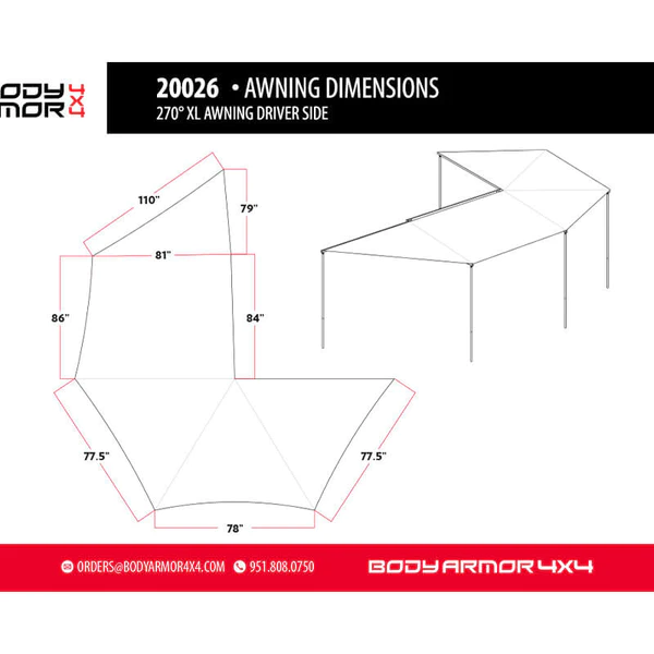 - Awning made of 420d ripstop polyester oxford fabric, polyurethane coated for 2500mm waterproofing