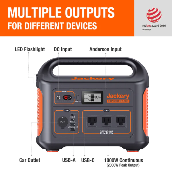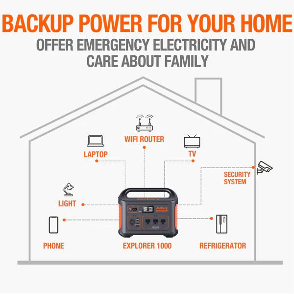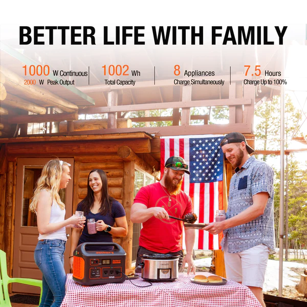CHARGE: Jackery Explorer 1000 can charge 8 different devices simultaneously. Such as Mini Fridge, Phone, Drone, Laptop, iPad, Blender, Camera, Kindle.