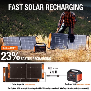 BUILT-IN MPPT CONTROLLER: The MPPT module is built inside the Explorer 1000. By constantly monitoring the voltage and current output of your solar panels, MPPT adds up to 23% more solar recharging efficiency