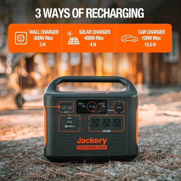 SOLARPEAK TECHNOLOGY: Jackery invented a technology for creating a smarter, more user-friendly, and higher efficient operating system – the Solarpeak Technology® (an upgraded MPPT). It builds in the Explorer 1500 and adds 30% more solar recharging efficiency.