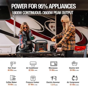 1800W CONTINUOUS /3600W PEAK OUTPUT: Explorer 1500 has 1800W continuous /3600W peak output and 1534Wh capacity. Ideal for Home DIY Can supply electricity for high-power devices like Electric Hammer, Air Compressor, Circular Saw, Angle Grinder, Electric Wrench, etc.