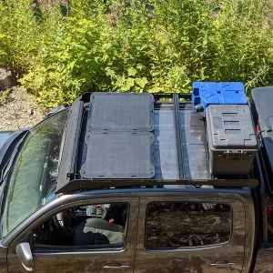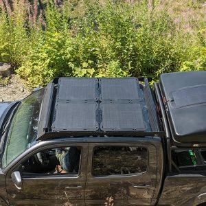 – 45 watt solar panels for your Prinsu Roof Rack, these solar panels are only 3mm thick and are pre-mounted to a 4mm thick laser cut piece of powder-coated aluminum for low profile and solid design. Because of the robust construction, you are able to stack gear (recovery gear, totes, etc) on top of the panels if necessary.