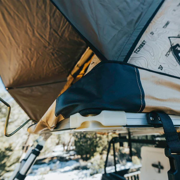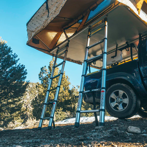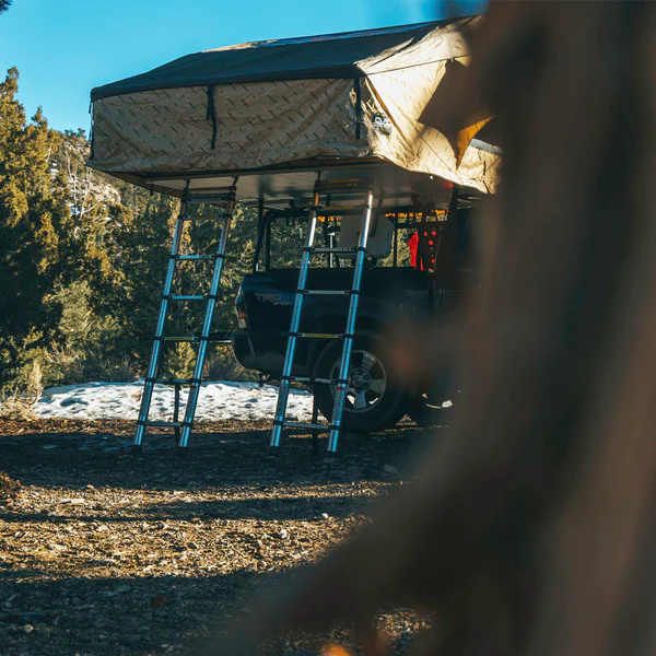 Bring the whole family with the Mt. Denali tent, which is designed to sleep ‘four-plus.’ This behemoth features the option to divide the tent into two halves, each with its own door and ladder. This way you can essentially have two tents in one, or keep the whole tent open and snuggle up. Bed Rack Needs to be Roof Rack Height to fit this Roof Top Tent on a Tacoma.